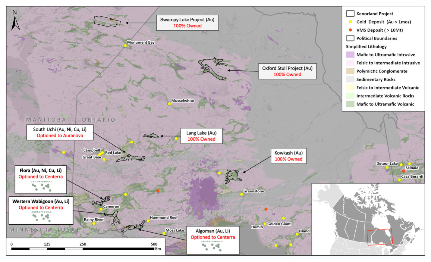 Figure 4. Kenorland western Superior Province gold project portfolio overview